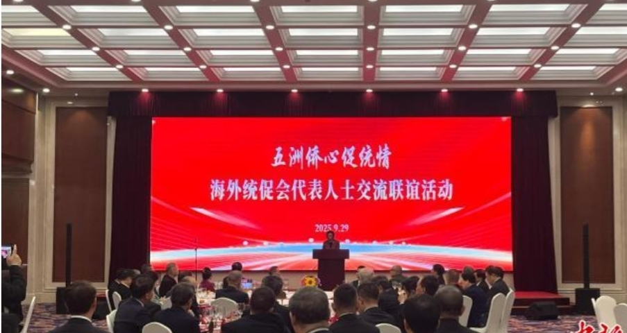 2025年9月27日晚出席由国务院侨办在钓鱼台国宾馆举行的庆祝中华人民共和国成立76周年侨界代表招待会,约370名海外侨胞和归侨侨眷代表出席。国务院侨办主任陈旭主持。中央统战部分管日常工作的副部长沈莹出席并致辞。