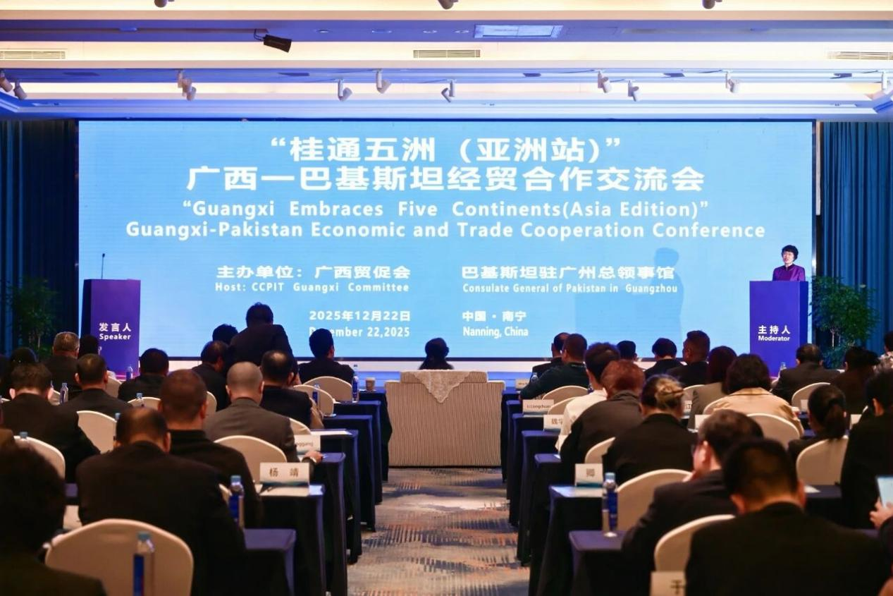 2025年12月22日,由广西贸促会与巴基斯坦驻广州总领事馆共同举办的“桂通五洲(亚洲站)”广西—巴基斯坦经贸合作交流会在南宁举行,驻广西办事处主任陈婉玲代表新西兰中国国际贸易促进委员会应邀出席。本次交流会旨在增进了解,进一步拓展广西与巴基斯坦在经贸投资等领域的交流与合作。