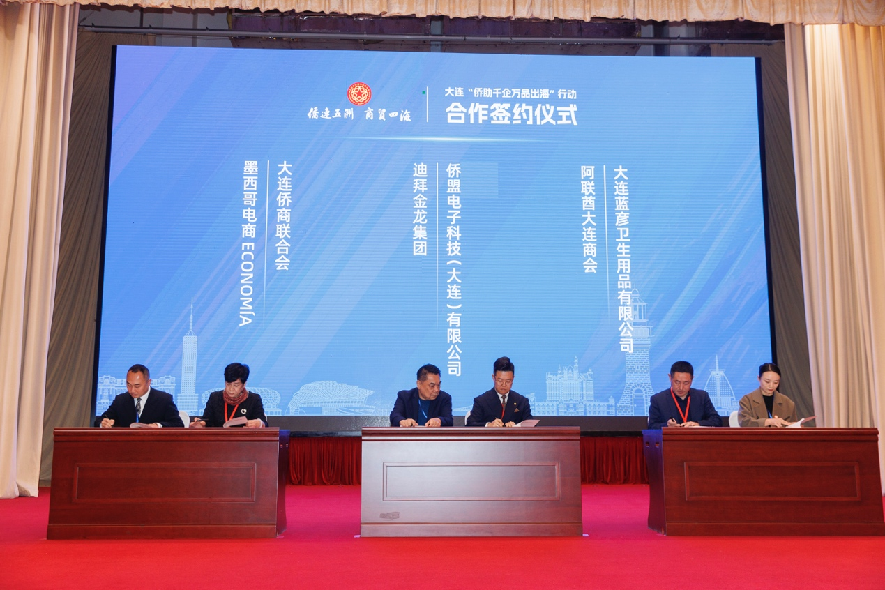 阿联酋大连商会、迪拜金龙集团等海外商会及侨企与大连市相关商协会及企业成功签订合作协议,为未来的出海之路奠定坚实基础。现场还设置了大连本地优质企业产品展示,进一步促进大连企业与海外侨商深度对接洽谈。