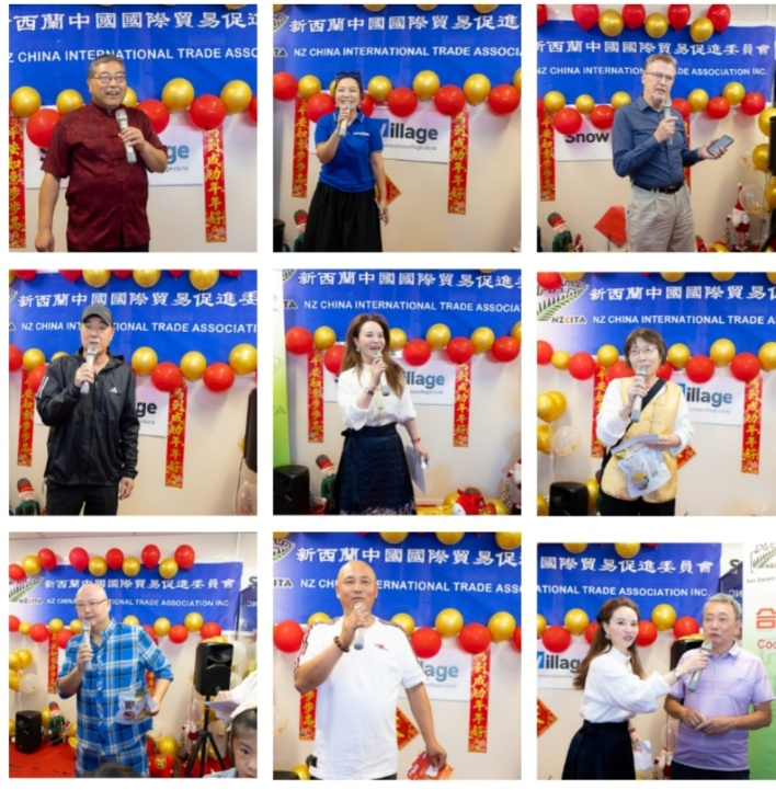 会长和志耘,新中友协奥克兰分会副主席Leo de Graaf,国家一级演员/著名表演艺术家王全有老师,雪村冷柜董事长董静丽出席并致辞。新-中国际贸促会各部门正副部长集体向会员和家属拜年:祝大家新春快乐,马年吉祥,阖家幸福,马上发财。